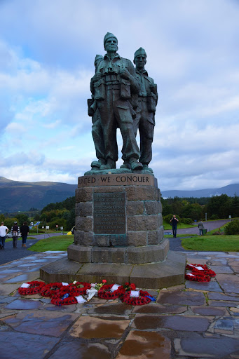 Our first stop of the day was at the Commando Memorial, in the shadow of Ben Nevis and overlooking the Commando Training Depot established during World War II. The memorial commemorates the men of the Commando force that fought during WWII. Although Ben Nevis towers over the area, we could only see the base of the mountain, as there was a lot of cloud cover.